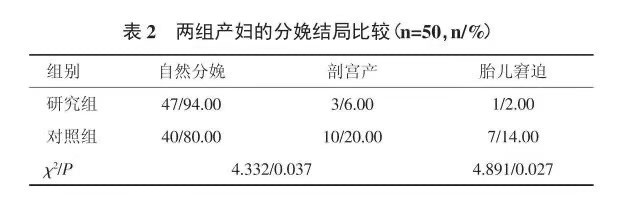 研究組(zu)的自然分娩率(lv)(lv)高于(yu)對照組(zu),剖(pou)宮產率(lv)(lv)與胎兒窘迫率(lv)(lv)低于(yu)對照組(zu) (P<0.05,表(biao)2)。