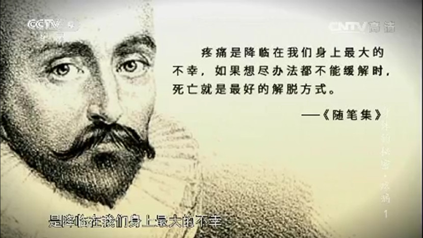 法(fa)國文藝復興時期的(de)思想(xiang)(xiang)家(jia)蒙田說過:疼痛(tong)是降臨在我們身上(shang)最(zui)大的(de)不幸,如果想(xiang)(xiang)盡(jin)辦法(fa)都不能(neng)緩解(jie)時,死(si)亡就是最(zui)好的(de)解(jie)脫方式。——《隨筆集》